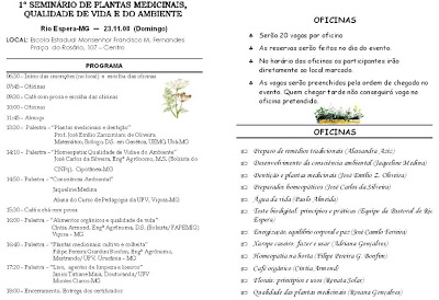1º Seminário de Plantas Medicinais, Qualidade de Vida e do Ambiente