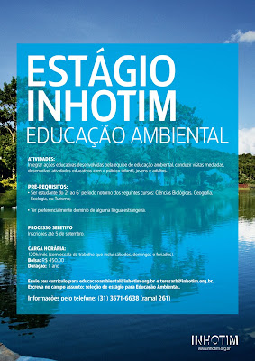 O Instituto Inhotim (http://www.inhotim.org.br/) abriu a seleção para os candidatos a estágio na área de Educação Ambiental.