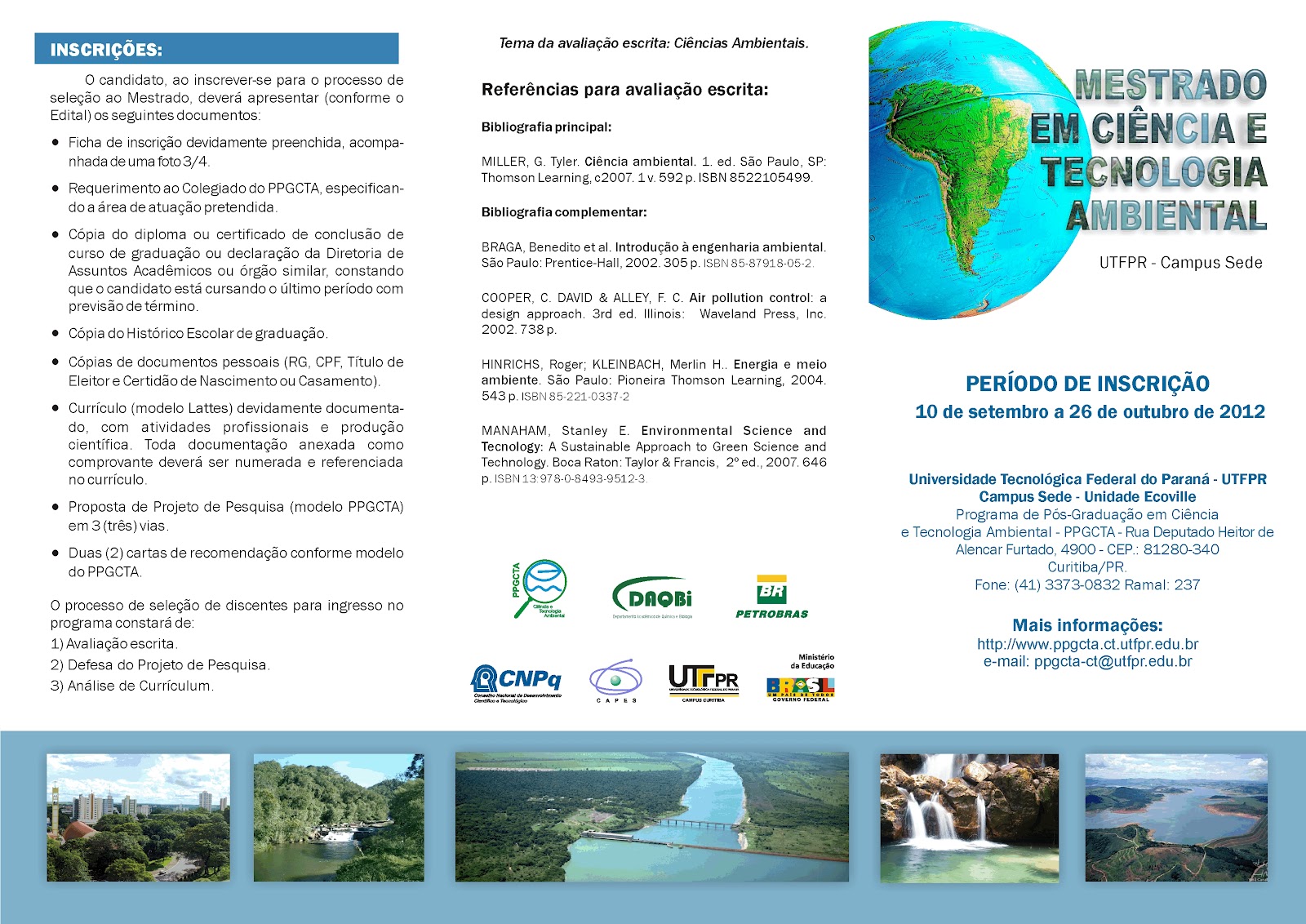 O Programa de Pós-Graduação em Ciência e Tecnologia Ambiental (PPGCTA) objetiva a capacitação de docentes e novos pesquisadores para atuarem em ciências e processos ambientais, ...