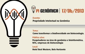 Evento Propriedade Intelectual na Genômica Tema Como transformar a biodiversidade em biotecnologia. Público-alvo Pesquisadores na área de genômica e bioinformática, NITs, empresas de biotecnologia Local ...