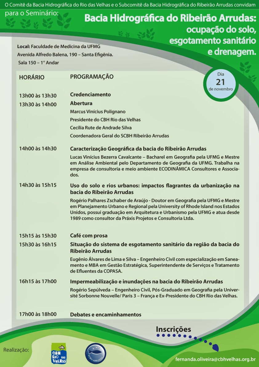 O Comitê da Bacia Hidrográfica do Rio das Velhas (CBH Rio das Velhas) e o Subcomitê da Bacia Hidrográfica do Ribeirão Arrudas (SCBH Ribeirão Arrudas) ...
