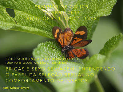 O Instituto de Ciências Biológicas da UFMG sediará o seminário “Brigas e sexo selvagem: entendendo o papel da seleção sexual no comportamento de insetos”. O ...
