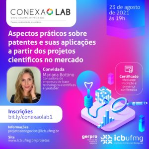 O Instituto de Ciências Biológicas da UFMG promove, no dia 23/08, às 19h, a palestra on-line “Aspectos práticos sobre patentes e suas aplicações a partir dos projetos científicos no mercado”.
