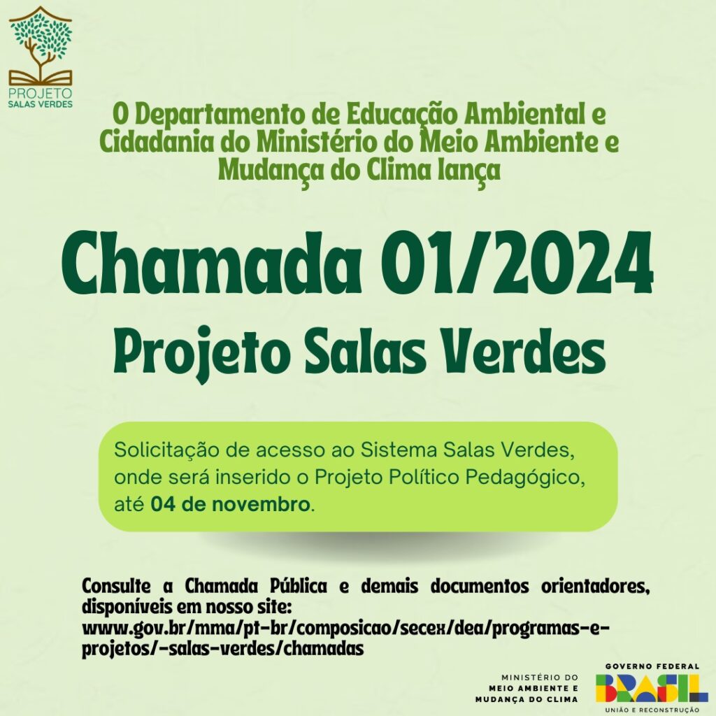 O Departamento de Educação Ambiental e Cidadania do Ministério do Meio Ambiente e Mudança do Clima está com chamada pública aberta para a seleção de novas salas verdes.