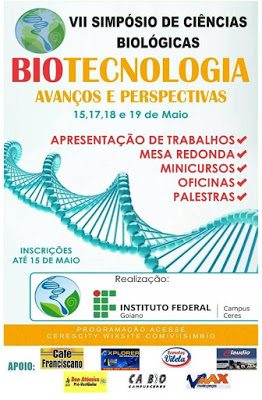 O Instituto Federal Goiano – campus Ceres – promove, na próxima semana, seu VII Simpósio de Ciências Biológicas. O tema desta edição será “Biotecnologia: avanços ...